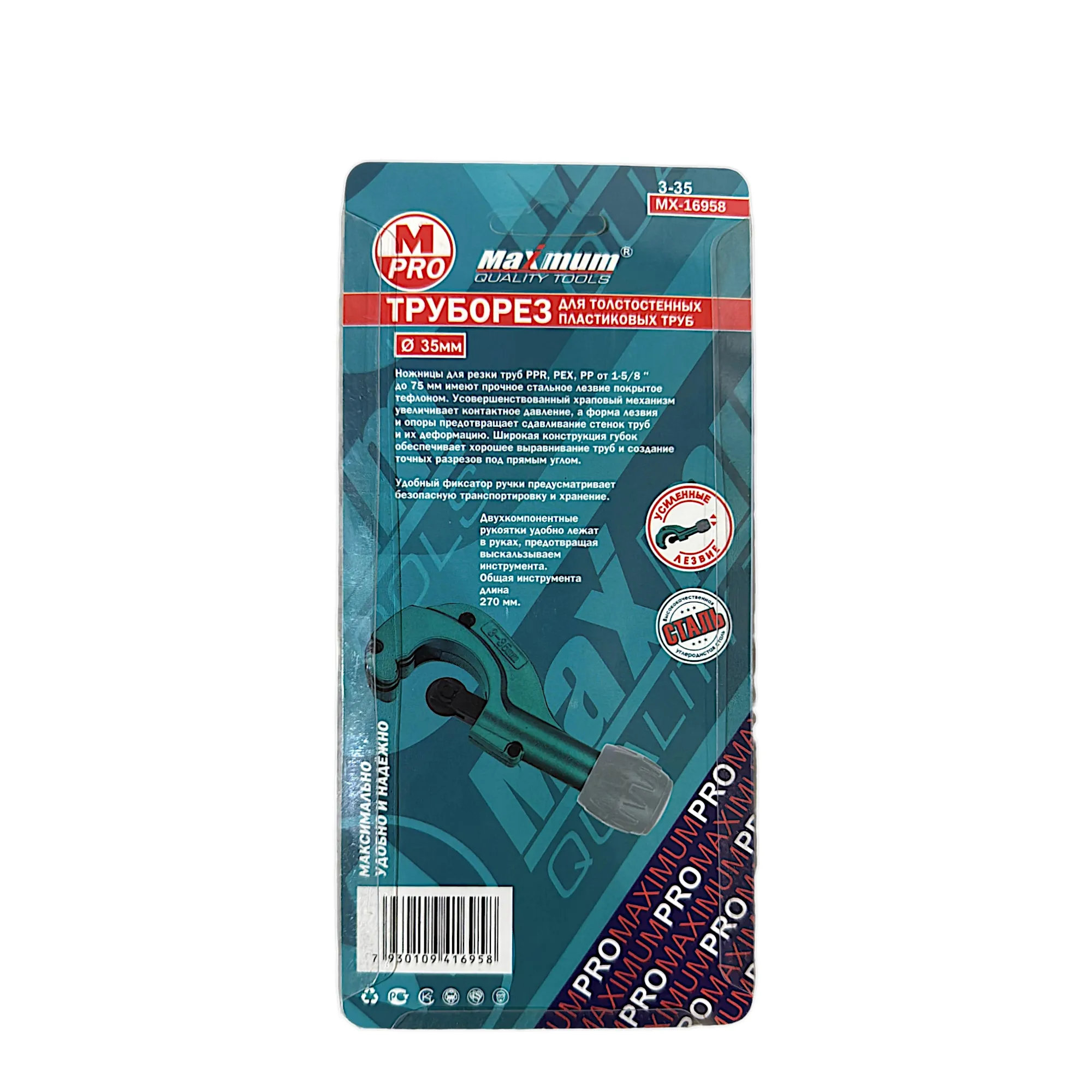 Профессиональный роликовый труборез от "MAXIMUM" для армированных и толстостенных труб 3-35 мм — незаменимый инструмент для монтажа инженерных систем. Он создан для точной резки армированных и толстостенных полимерных труб, которые используются в ответственных участках водоснабжения, отопления и канализации.