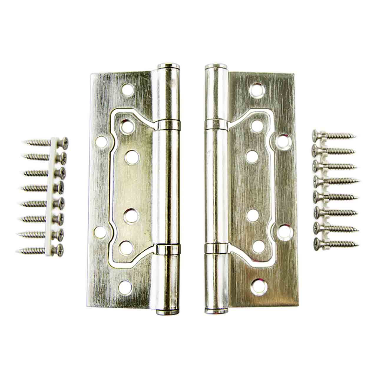 Петля универсальная без врезки цвета матовый хром с гальваническим покрытием устойчиво к коррозии. В универсальной дверной петле установлены втулка-подшипники и стальной стержень, что обеспечивает работоспособность 200 000 циклов открывания/закрывания.