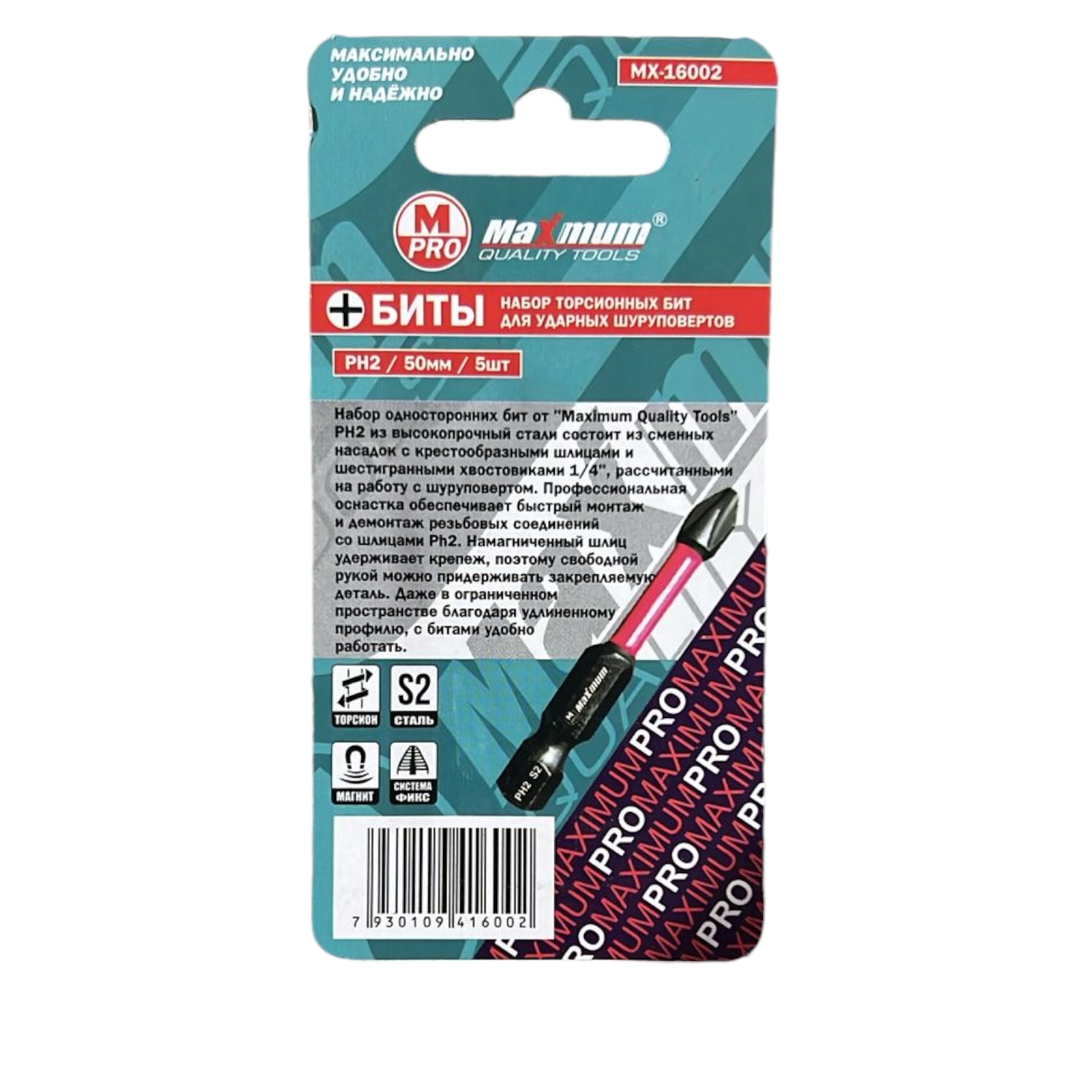 Черненная торсионная бита 50 мм от "Maximum Quality Tools" за счет эффекта скручивания способна к работе на высоких крутящих моментах, что способствует сохранению шлица биты, крепежа и увеличенному сроку службы. Намагниченный шлиц PH2 обеспечивает дополнительное удобство в работе, а также предотвращает выскальзывание.